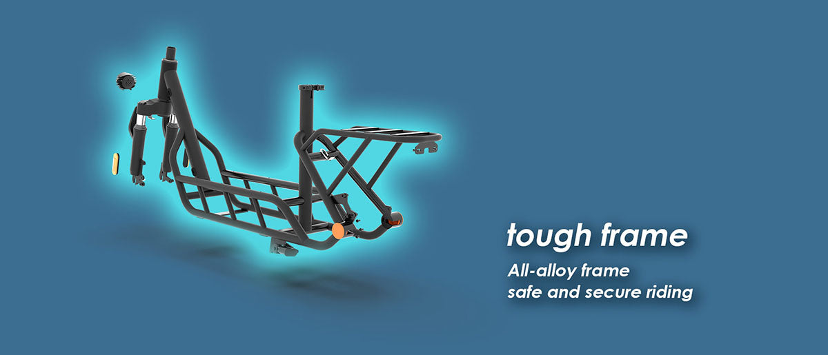 It combines the convenience of a scooter with the comfort typically associated with bicycles.