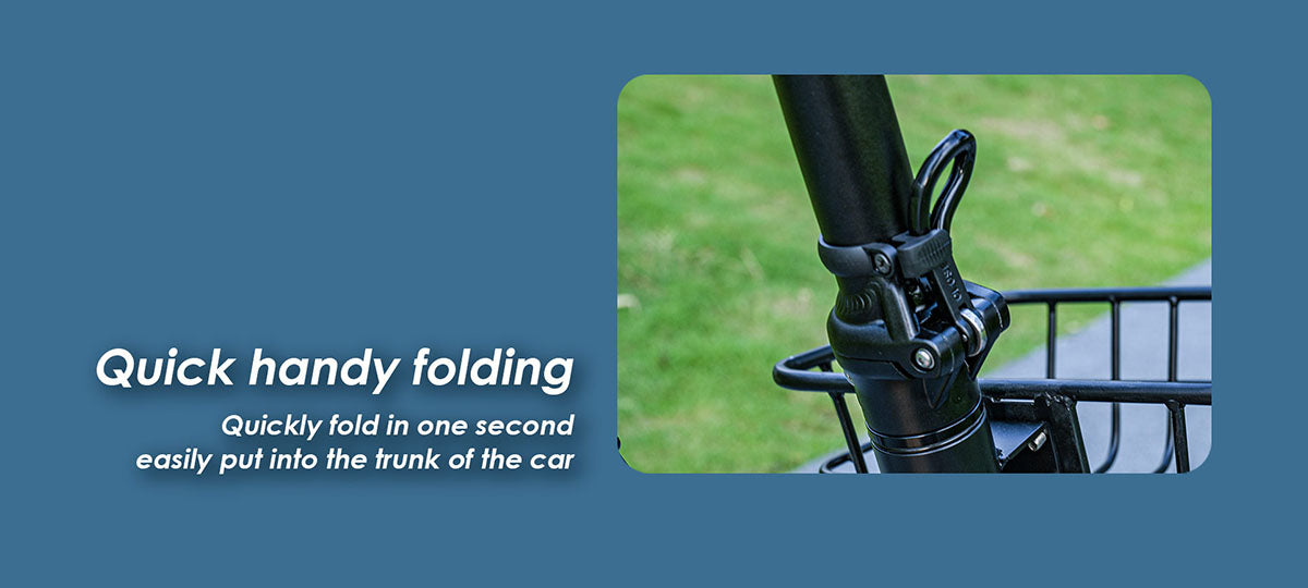 The KuKirin C1 Pro features a one-touch folding operation. Simply pull the folding lever to fold it quickly. This operation eliminates the tedious steps of traditional folding, improves the experience and convenience, and makes it easy for you to carry and store.