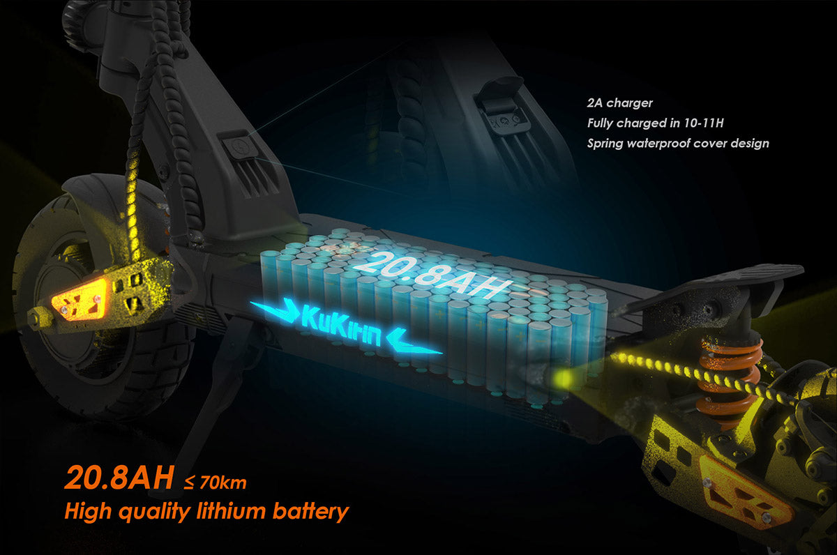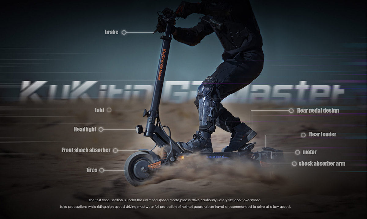 The KuKirin G2 Master electric scooter is powered by two 1000W high-performance dual-drive motors that can reach a top speed of 60km/h. The superior motors provide strong power for travelling and exploring, going uphill without any pressure and navigating various terrains with ease. In addition, the dual drive motors provide better control and stability, making you safer and more comfortable while driving and reducing fatigue on the ride.