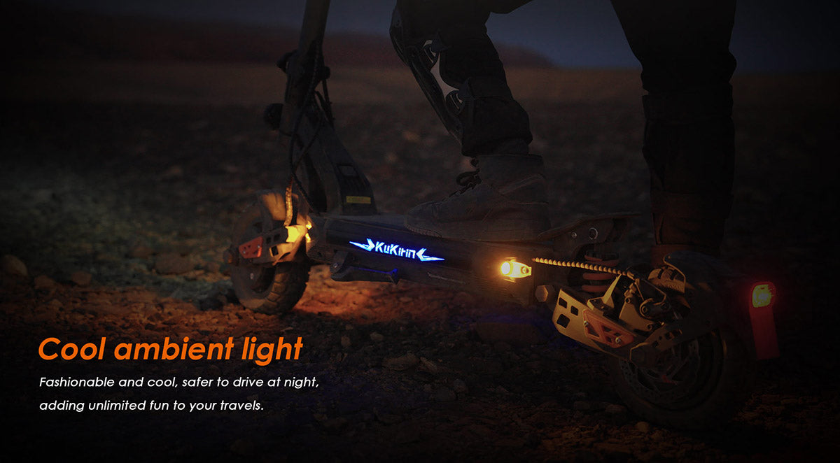 KuKirin G2 Master adopts front and rear hydraulic shock absorbers. The front and rear hydraulic shock absorbers use the fluidity and compressibility of liquid to absorb and disperse vibration energy, effectively reducing the impact of vibration; according to road conditions and driving conditions, vibrations respond in real time, helping to reduce fatigue and improve driving safety, providing you with a more reliable, safe and comfortable travel experience.